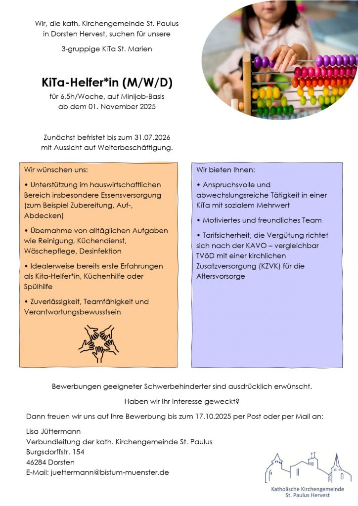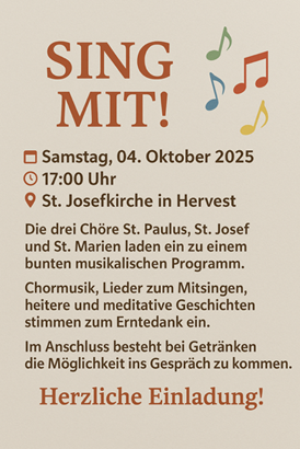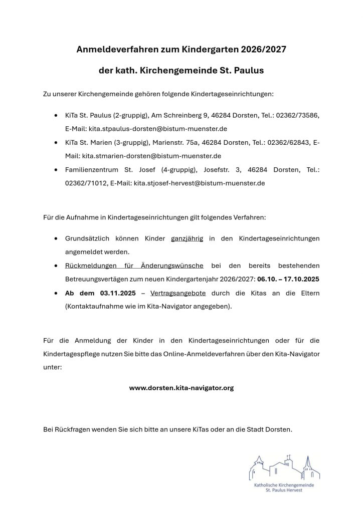 Anmeldungen sind bis 26.09.25 in unseren drei Pfarrbüros in St. Josef, St. Marien und St. Paulus oder hier als Download möglich.